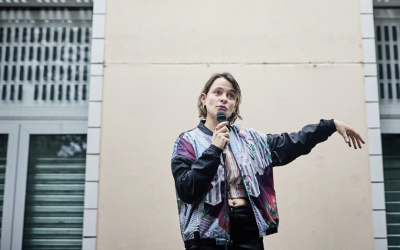 C’est l’histoire de Jag et son chien Johnny, racontée par Jag à Laurène Marx. Jag vient de la classe populaire rurale. Elle parle de sa maison d’enfance, de ses oncles et tantes, des anniversaires à la salle des fêtes, du cocon familial dysfonctionnel, de l’alcoolisme… Elle parle aussi de folie, de précarité et de violence. La rencontre entre la langue de Laurène Marx et le phrasé de Jag donne un parlé percutant et rythmé, chargé d’un vécu qui touche et qui fait passer du rire aux larmes plus d’une fois. La parole intime, les détails racontés par la personne qui les a vécus sont un précieux témoignage de l’expérience de la lutte et du transfuge de classe qui structurent la société. Mais c’est aussi l’histoire de Jag et Johnny et de leur plaisir à être ensemble pour échapper aux catégorisations qui conditionnent l’amour entre humain.es. Basée à Paris, la compagnie Hande Kader, créée en 2024, porte les projets théâtraux et politiques de Laurène Marx ; les questions de genre et de société sont au coeur de son engagement.