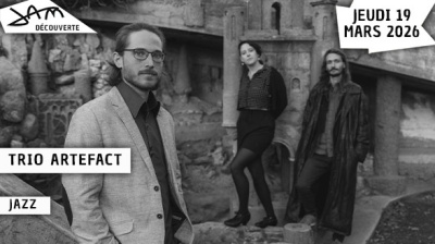 Le trio Artefact se démarque par son répertoire de compositions et d’arrangements modernes et poétiques. Envolées lyriques, rêveries et épopées fantastiques en huis clos sont à l’affiche d’une musique cinématographique qui puise notamment son inspiration dans le jazz de Kenny Wheeler, McCoy Tyner ou Bill Evans, ainsi que dans l’œuvre classique de Ravel.   Line-up : Emilie Ayer : Chant Toussaint Guerre : Clarinette basse Benjamin Thiébault : Piano